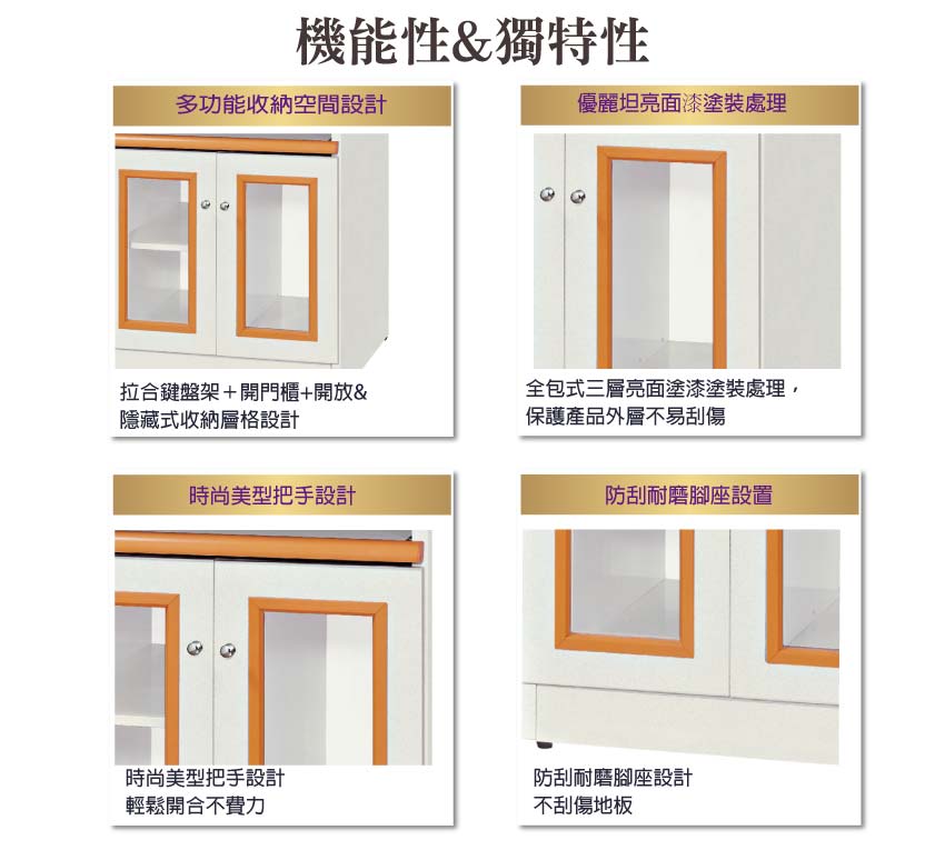 拉合式鍵盤架+開放收納層格+開門櫃等便利收納空間設計