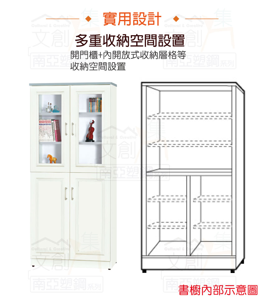 【文創集】海思 環保2.7尺南亞塑鋼四門書櫃/收納櫃(客約商品)