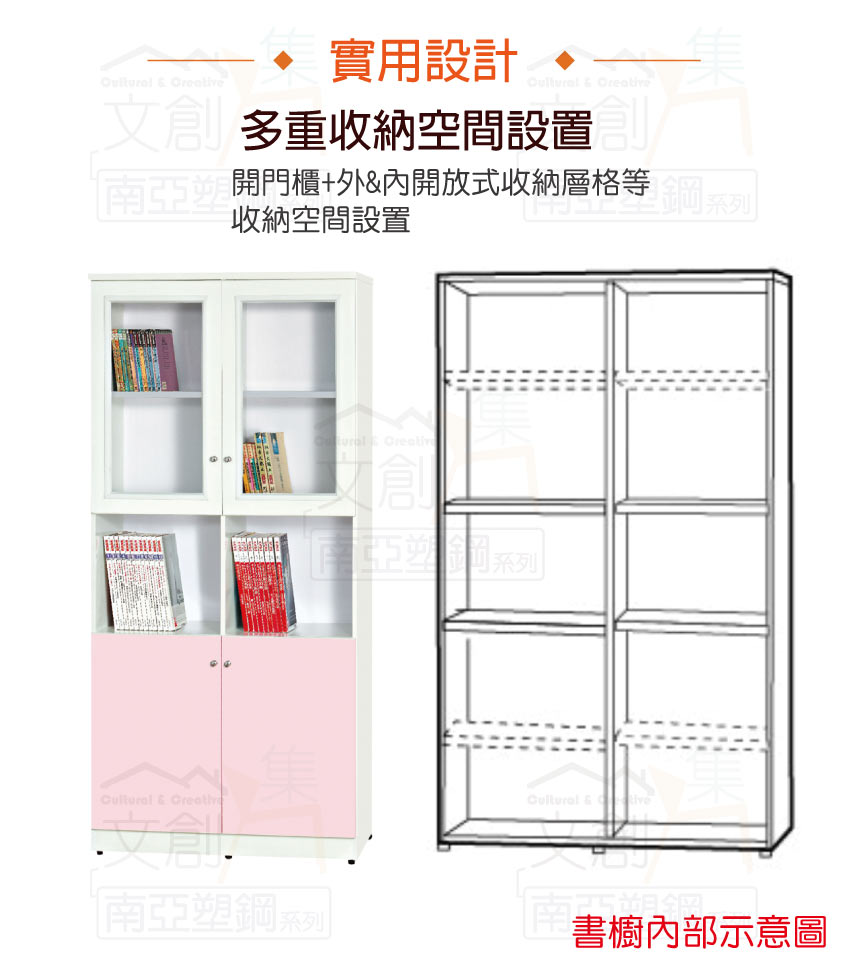【文創集】巴莉 環保3.1尺南亞塑鋼四門中空書櫃/收納櫃 產品採用第一品牌-台製南亞塑鋼舒美板+五金滑軌結構等材質,整體材質採用防水+防燃+無甲醛安心塑鋼材質製造 ,搭配開門櫃+內&外開放式收納等便利設計,防止受潮,增加支撐力,堅固不會塌陷,全由專人配送到家,專業安心服務,替你省下更多時間!