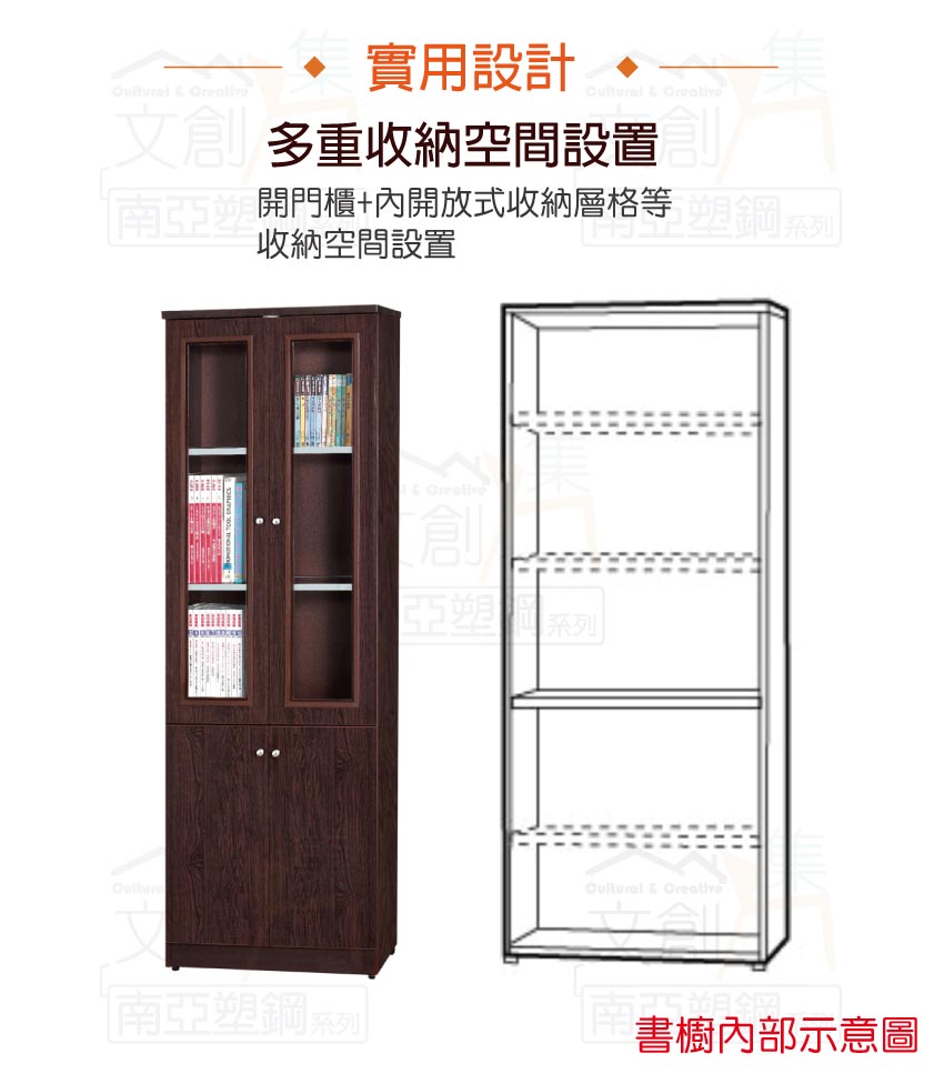 【文創集】巴莉 環保2.1尺南亞塑鋼四門書櫃/收納櫃(客約商品)