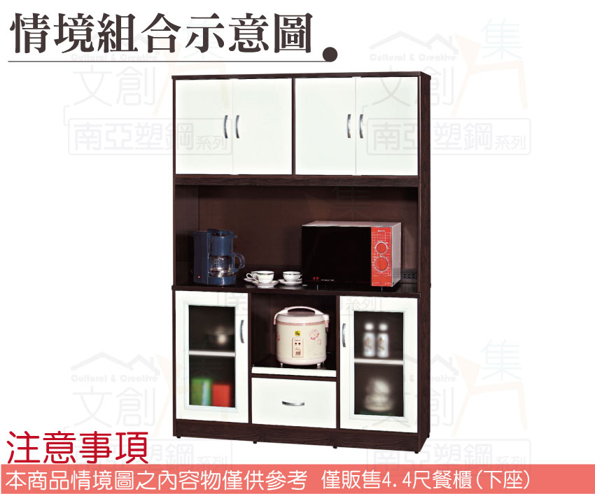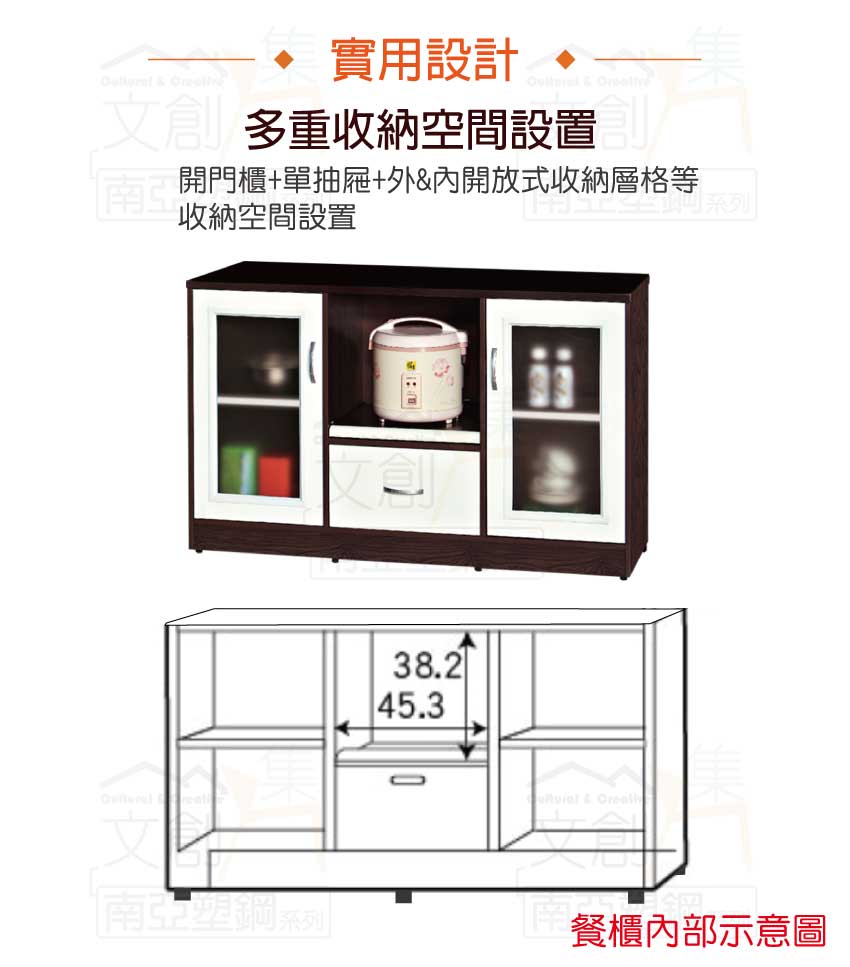 【文創集】凱爾 環保4.4尺南亞塑鋼二門單抽餐櫃/收納櫃(客約商品)