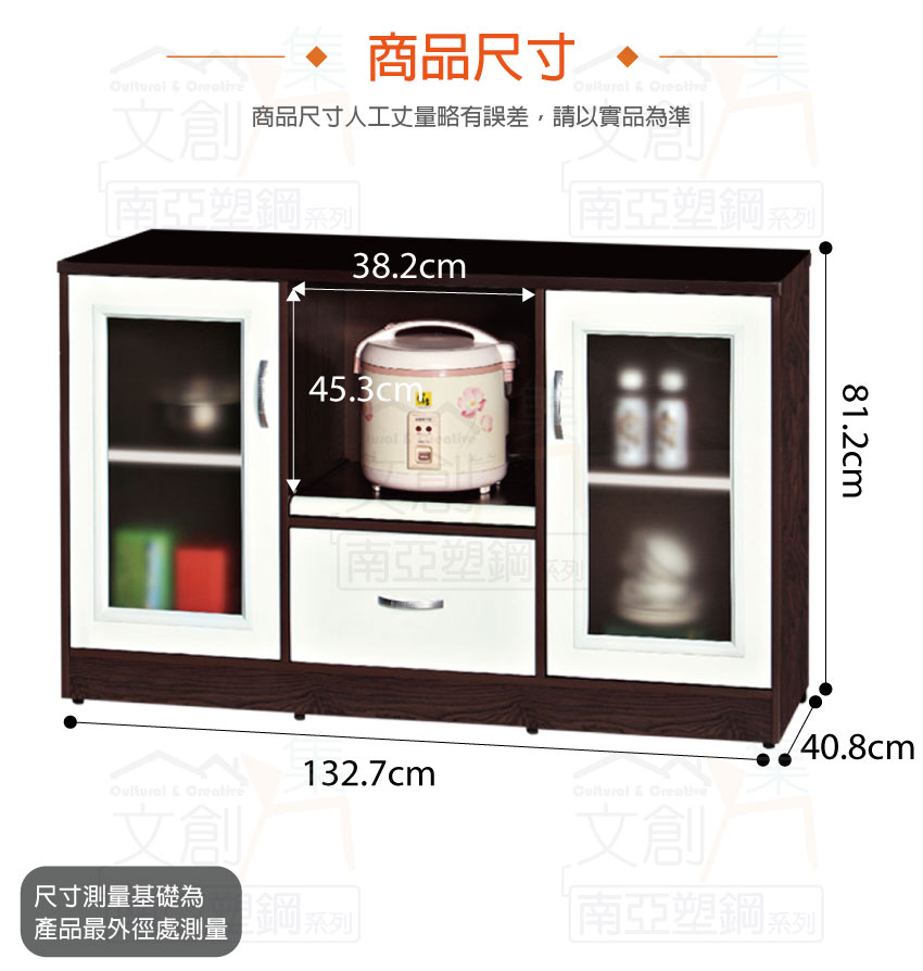 【文創集】凱爾 環保4.4尺南亞塑鋼二門單抽餐櫃/收納櫃 產品採用第一品牌-台製南亞塑鋼舒美板+五金滑軌結構材質,整體材質採用防水+防燃+無甲醛安心塑鋼材質製造 ,搭配開門櫃+單抽屜+內&外開放式層格+拉合式層架等便利收納空間設計,防止受潮,增加支撐力,堅固不會塌陷,全由專人配送到家,專業安心服務,替你省下更多時間!