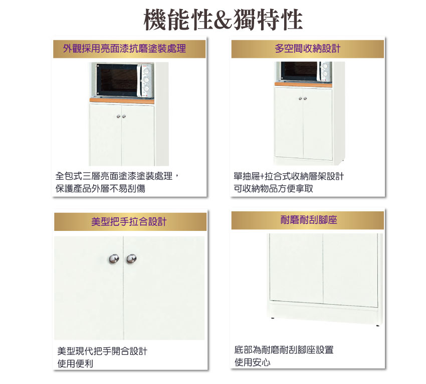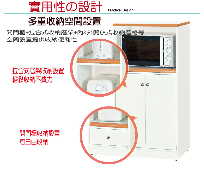 開門櫃+內&外開放式層格+拉合式層架等便利收納空間設計