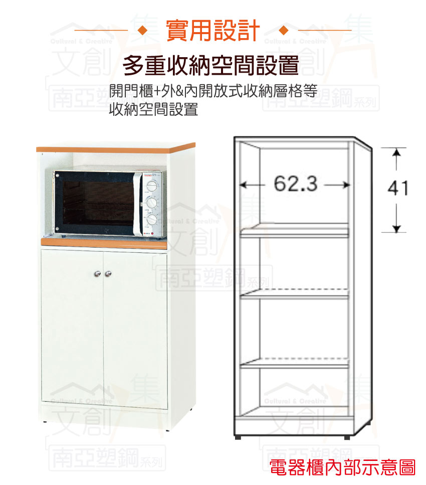 【文創集】波莉 環保2.2尺南亞塑鋼二門層架中餐櫃/收納櫃 產品採用第一品牌-台製南亞塑鋼舒美板+五金滑軌結構材質,整體材質採用防水+防燃+無甲醛安心塑鋼材質製造 ,搭配開門櫃+內&外開放式層格+拉合式層架等便利收納空間設計,防止受潮,增加支撐力,堅固不會塌陷,全由專人配送到家,專業安心服務,替你省下更多時間!