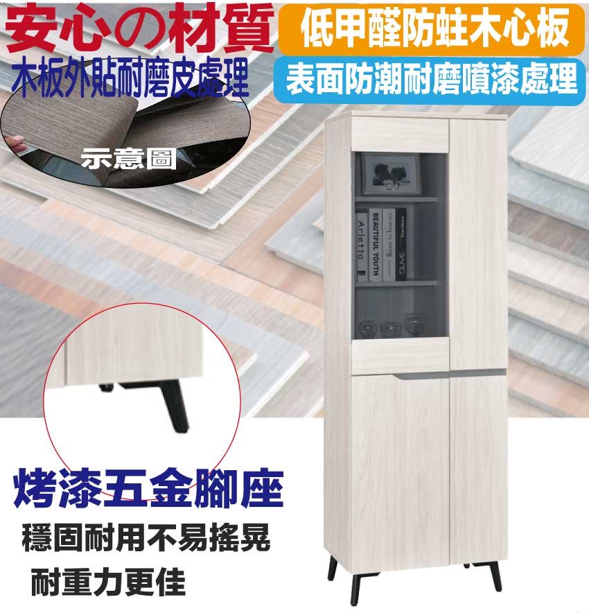 採用防蛀木心板+烤漆五金腳座+防夾手緩衝門片五金+5mm強化灰玻璃等安心材質製造