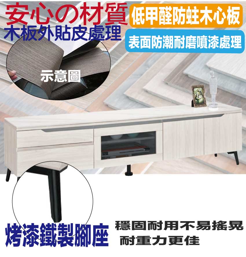 【文創集】丹尼6.7尺岩板三門二抽電視櫃 木紋雙色系+安心材質製造,使用放心+搭配居家更便利,採用防蛀木心板+烤漆五金腳座+防夾手緩衝門片五金+5mm強化灰玻璃+12mm高硬度岩板桌面板+五金滑軌結構等安心材質製造 ,外層採用防潮耐磨噴漆處理搭配採用開門櫃+二抽屜+內開放層格等收納空間設計,全由專人配送到家,專業安心服務,替你省下更多時間!