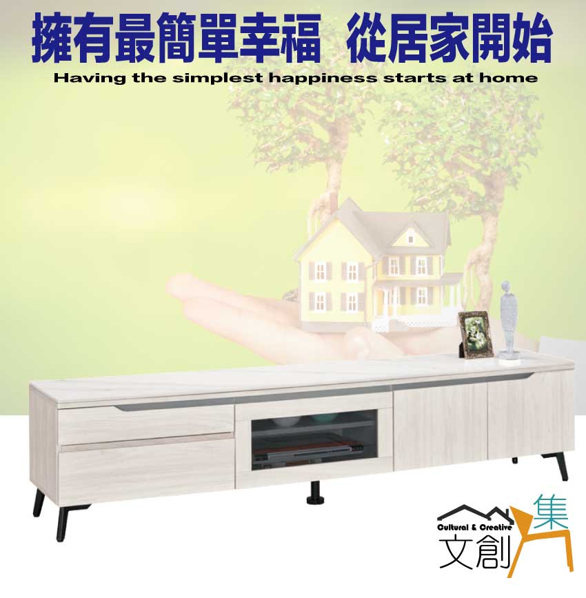 【文創集】丹尼6.7尺岩板三門二抽電視櫃(客約商品)