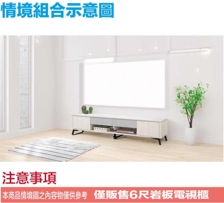 【文創集】克萊雙色6尺岩板開門二抽電視櫃(客約商品)