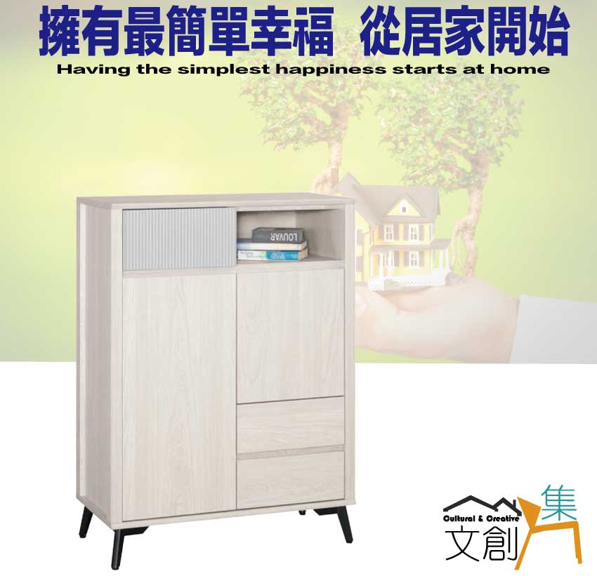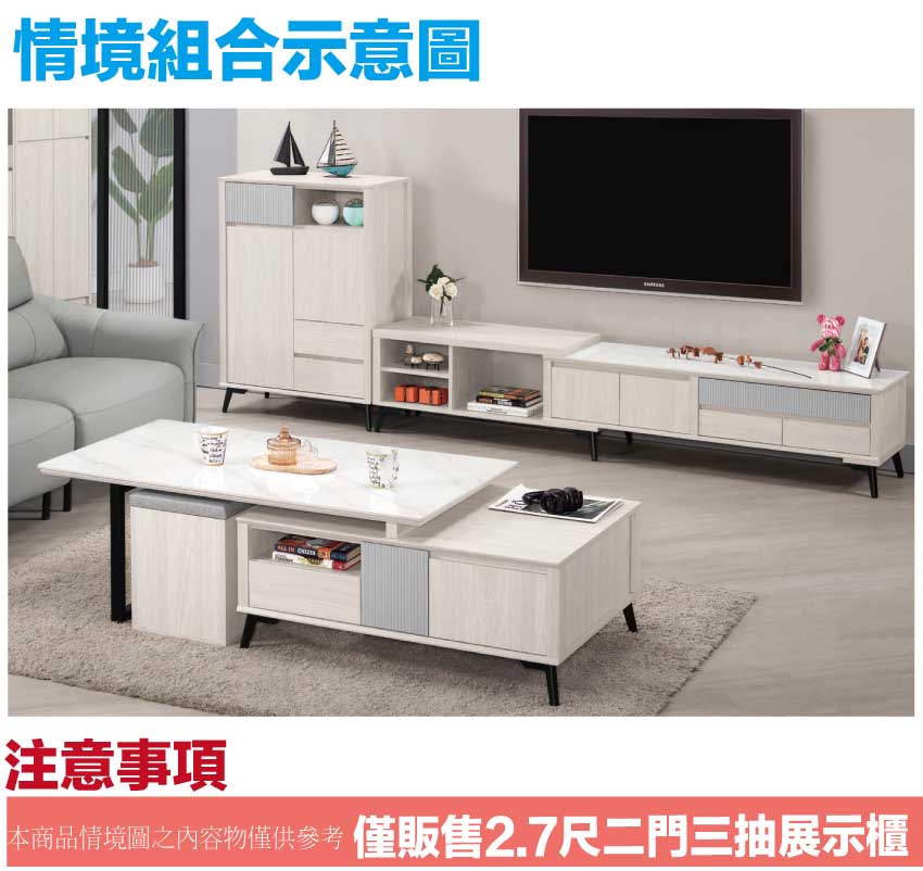 【文創集】克萊雙色2.7尺二門三抽展示櫃(客約商品)