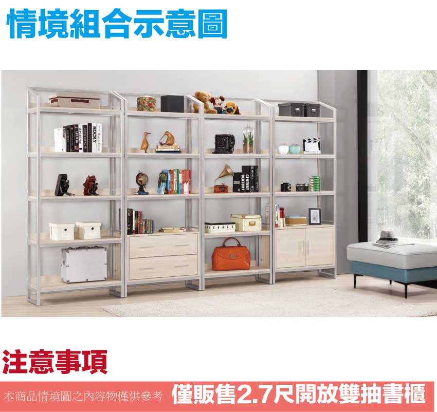【文創集】華爾2.7尺開放二抽金屬邊框書櫃-啞光銀雙色(客約商品)