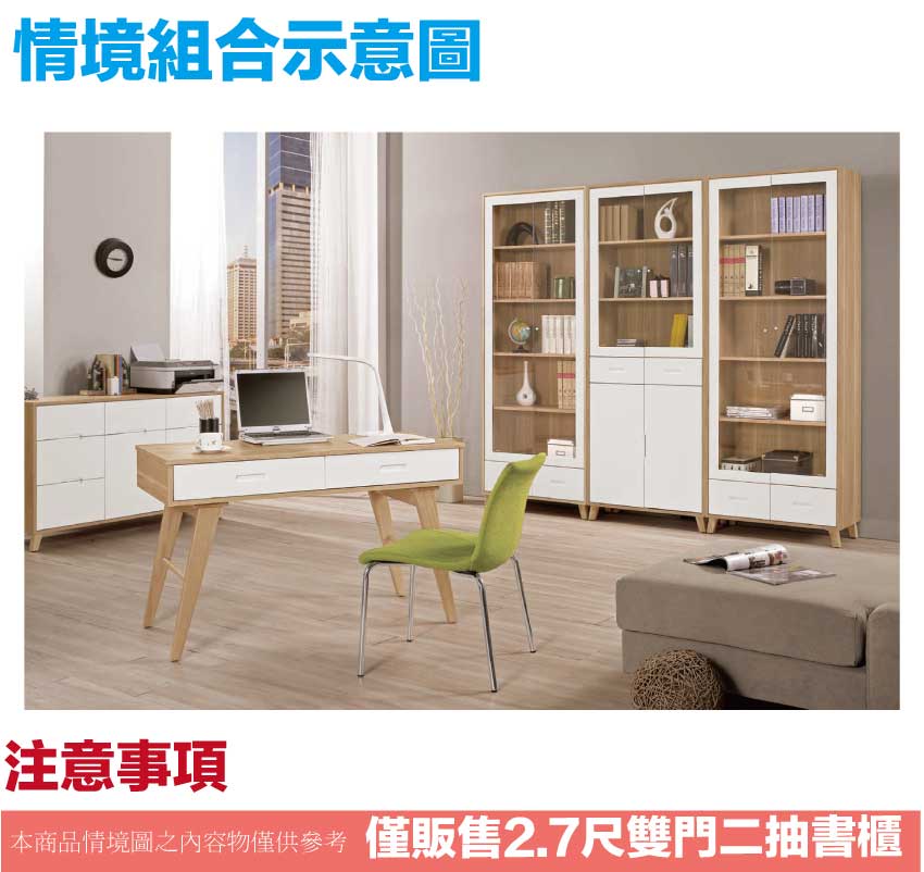 【文創集】卡蜜雙色2.7尺二門二抽書櫃(客約商品)