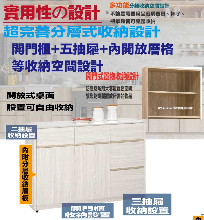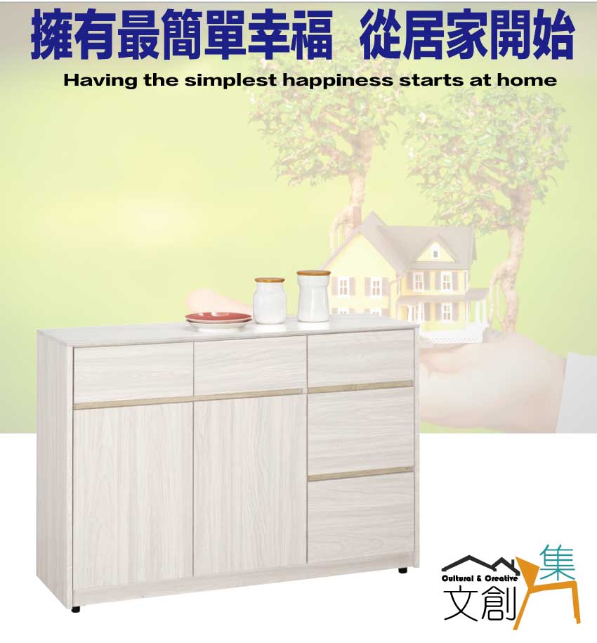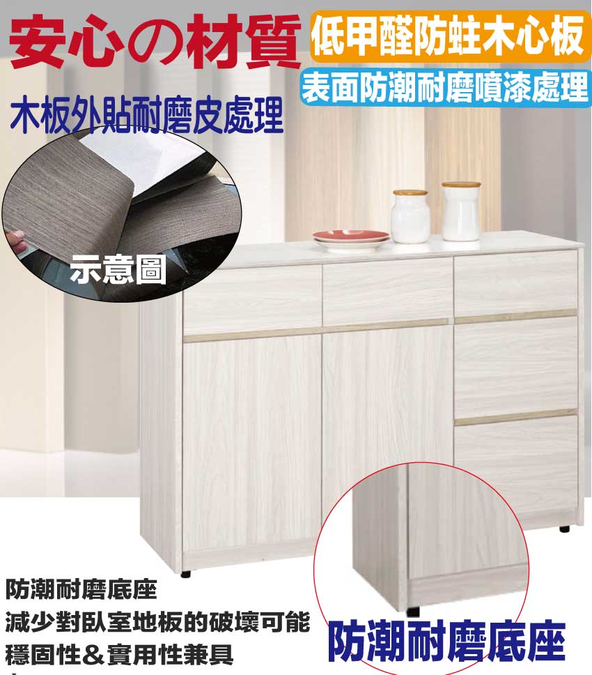 【文創集】寶亞4尺岩板五抽低餐櫃 木紋雙色系+安心材質製造,使用放心+搭配居家更便利,採用防蛀木心板+防潮耐磨底座+防夾手緩衝門片五金+12mm高硬度岩板桌面板+五金滑軌結構等安心材質製造 ,外層採用防潮耐磨噴漆處理搭配採用開門櫃+五抽屜+內開放層格等收納空間設計,全由專人配送到家,專業安心服務,替你省下更多時間!