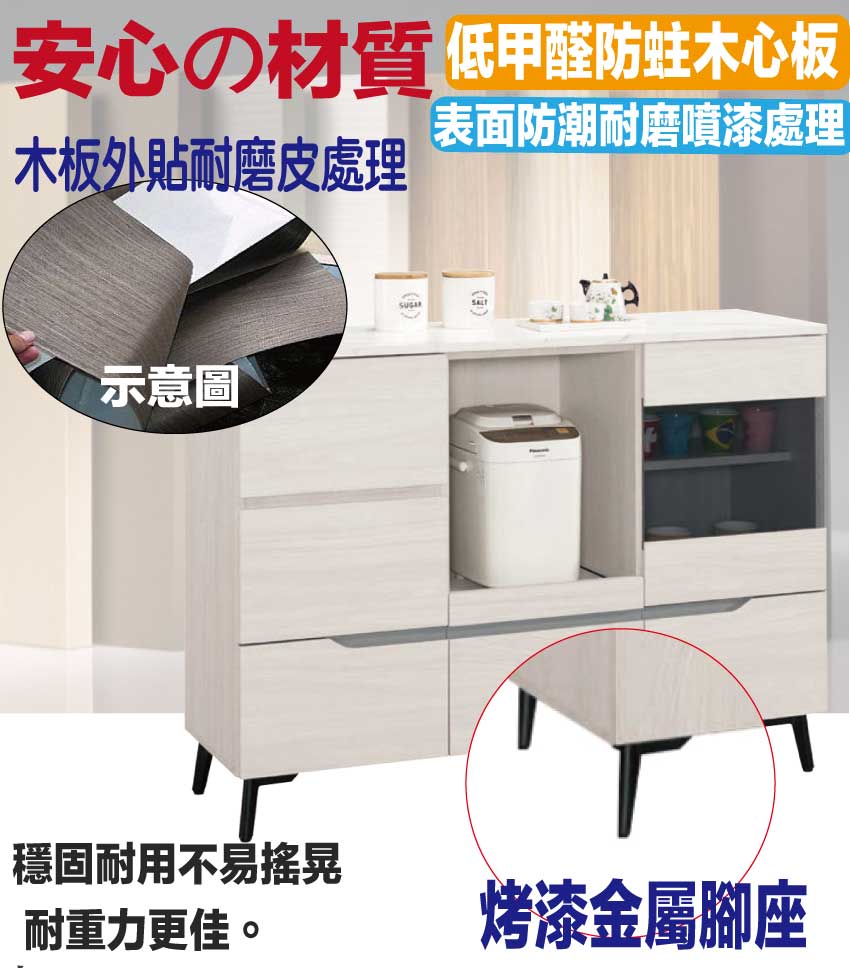 採用防蛀木心板+烤漆五金腳座+防夾手緩衝門片五金+5mm強化灰玻璃+仿石紋耐磨美耐皿桌面板+五金滑軌結構等安心材質製造