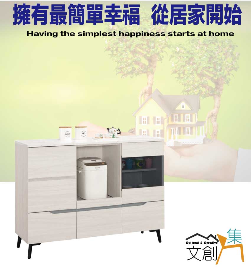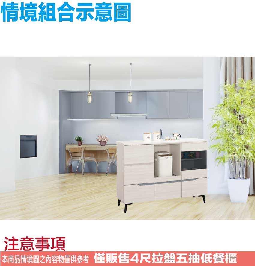 【文創集】丹尼4尺開門拉盤低餐櫃 木紋雙色系+安心材質製造,使用放心+搭配居家更便利,採用防蛀木心板+烤漆五金腳座+防夾手緩衝門片五金+5mm強化灰玻璃+仿石紋耐磨美耐皿桌面板+五金滑軌結構等安心材質製造 ,外層採用防潮耐磨噴漆處理搭配採用開門櫃+拉盤層架+五抽屜+內&外開放層格等收納空間設計,全由專人配送到家,專業安心服務,替你省下更多時間!