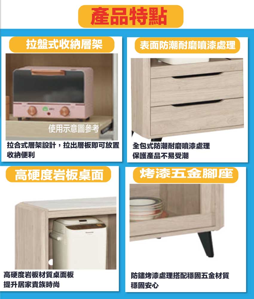 採用防蛀木心板+烤漆五金腳座+五金滑軌結構+12mm高硬度岩板桌面板等安心材質製造