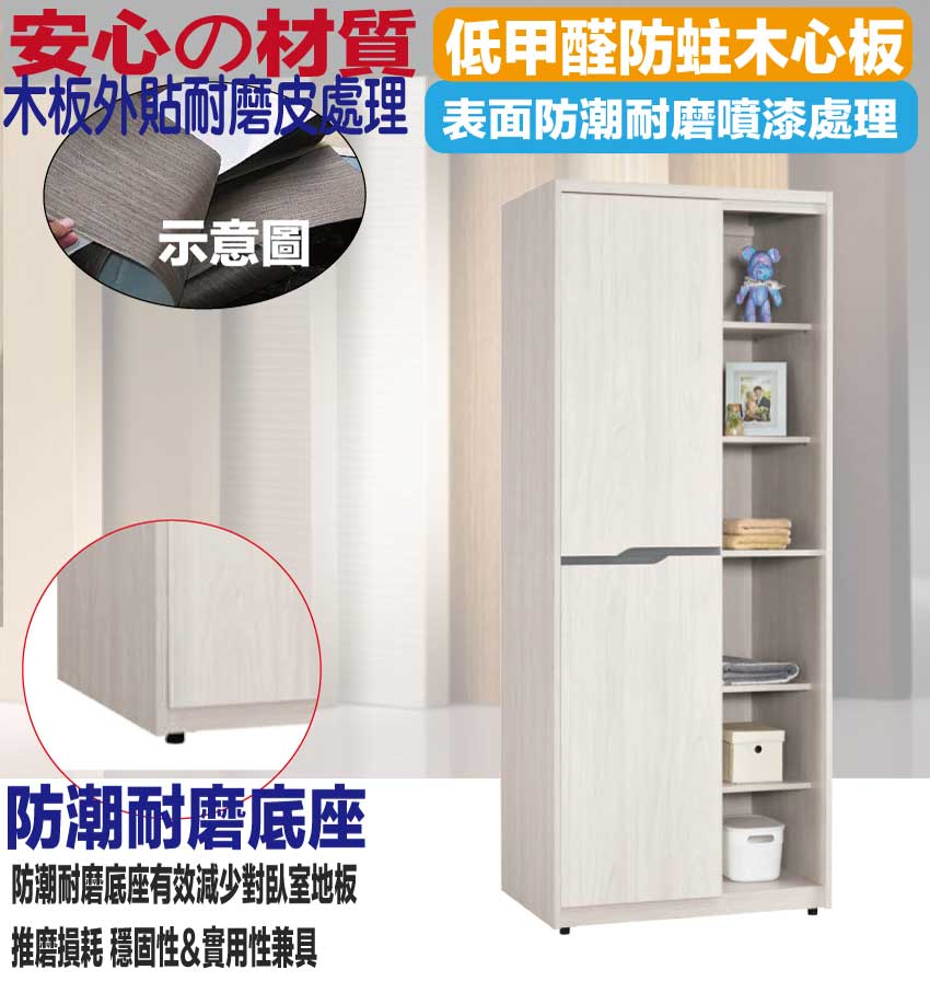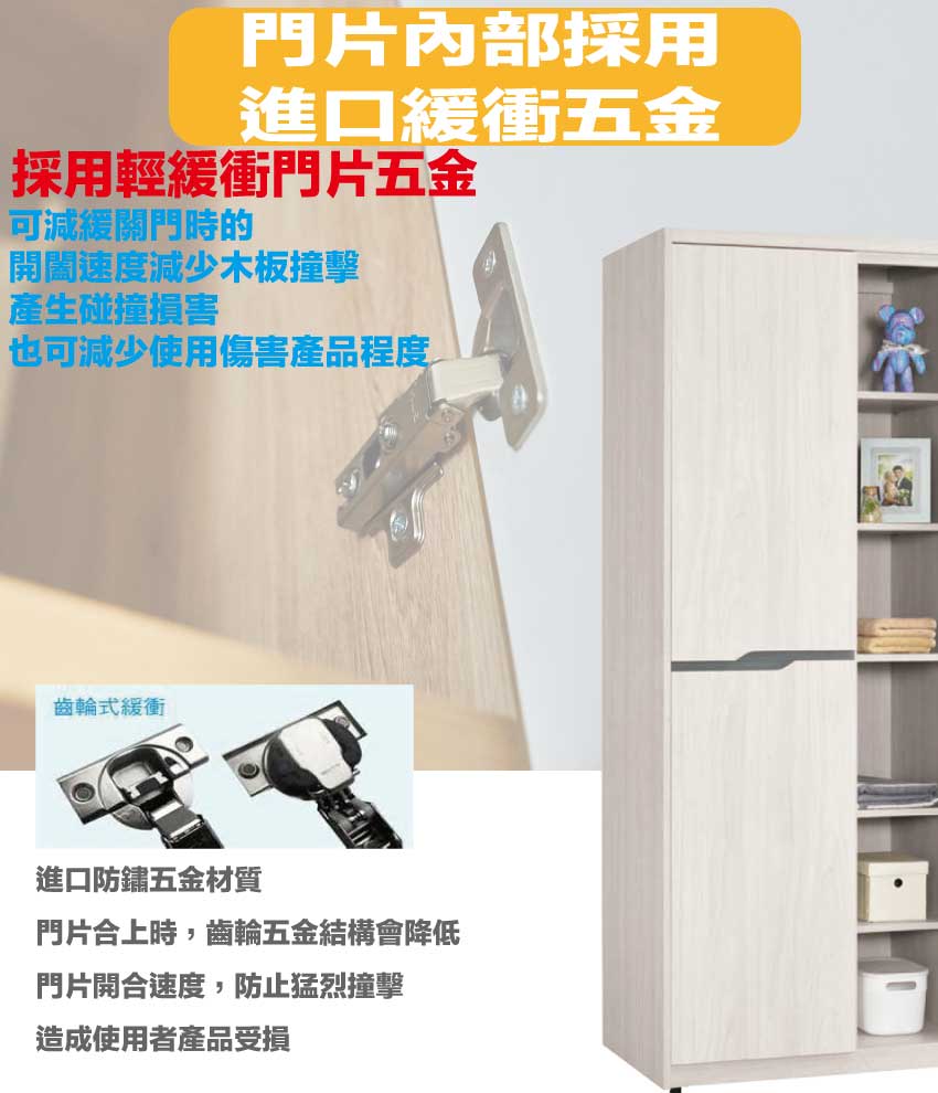 採用防蛀木心板+防潮耐磨底座+防夾手緩衝門片五金等安心材質製造