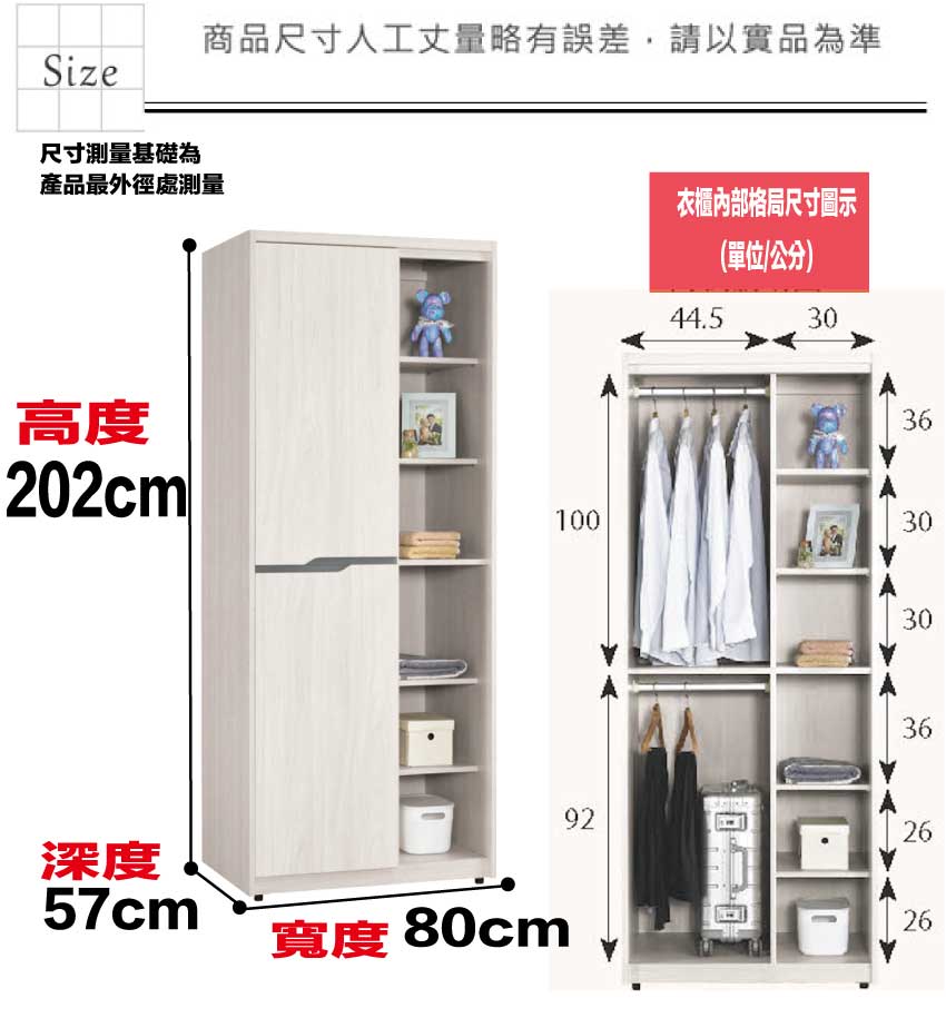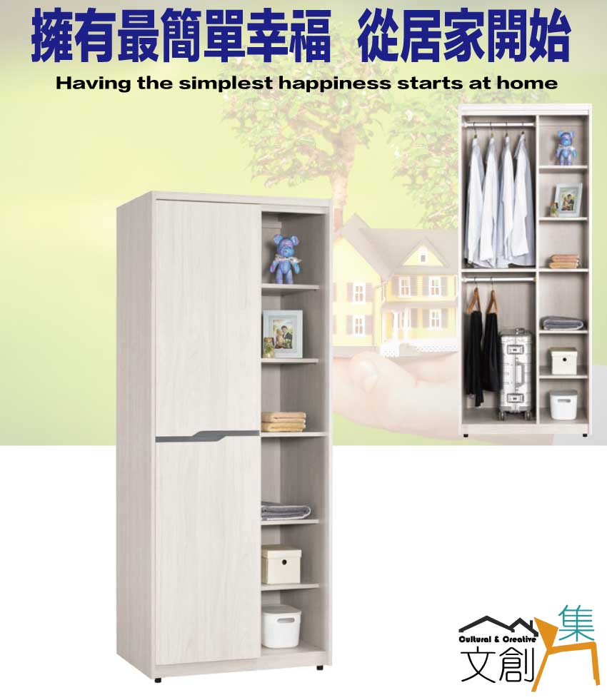 【文創集】丹尼2.7尺二門雙吊半開放衣櫃(客約商品)
