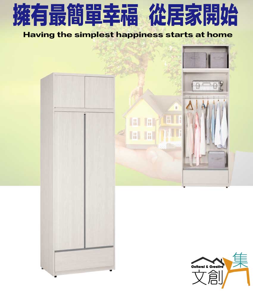 【文創集】華爾2.7尺四門內單抽加高衣櫃組合 木紋雙色系+安心材質製造,使用放心+搭配居家更便利,採用防蛀木心板+防潮耐磨底座+防夾手緩衝門片五金+五金滑軌結構等安心材質製造 ,外層採用防潮耐磨噴漆處理搭配採用開門櫃+吊衣桿+單抽屜+內開放層格等收納空間設計,全由專人配送到家,專業安心服務,替你省下更多時間!