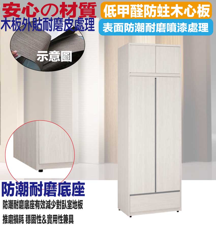 材質:防蛀木心板+防潮耐磨腳座+防夾手緩衝門片五金+五金滑軌結構
