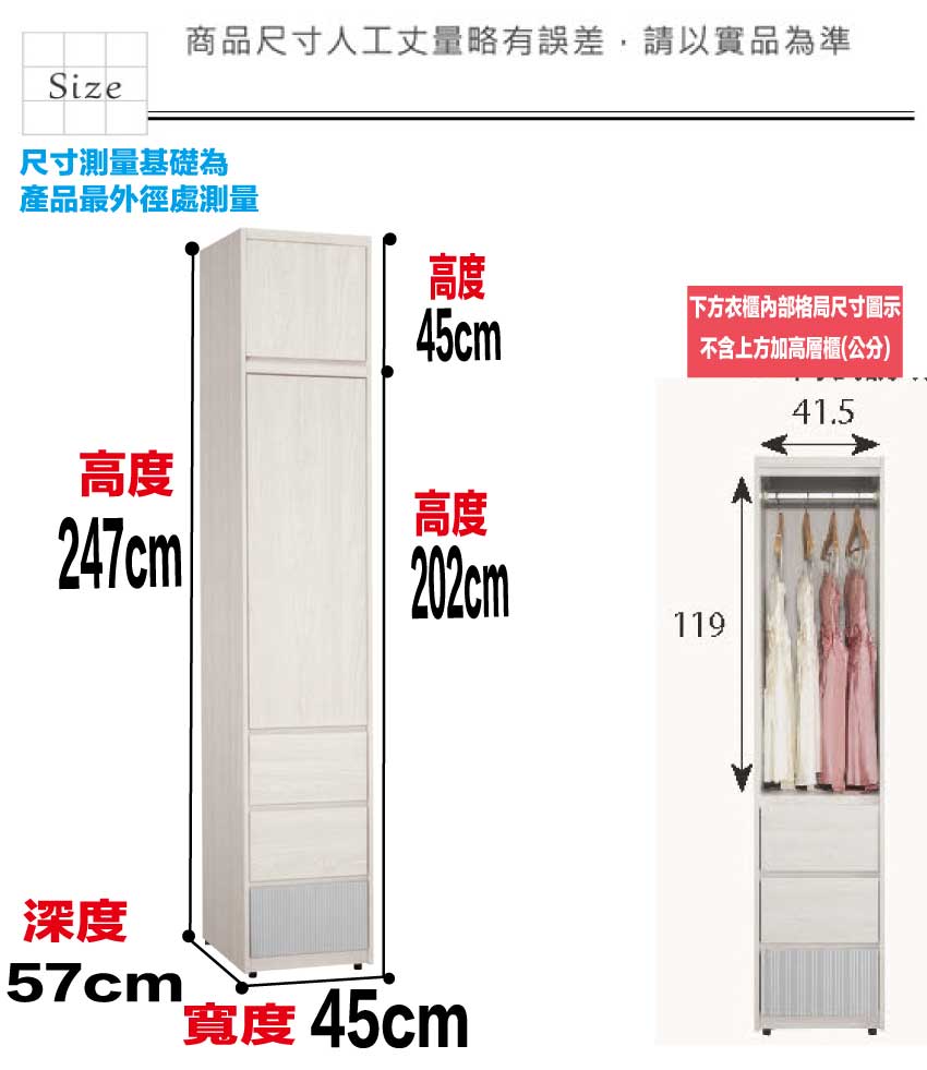 尺寸:(寬)45x(深)57x(高)247/公分