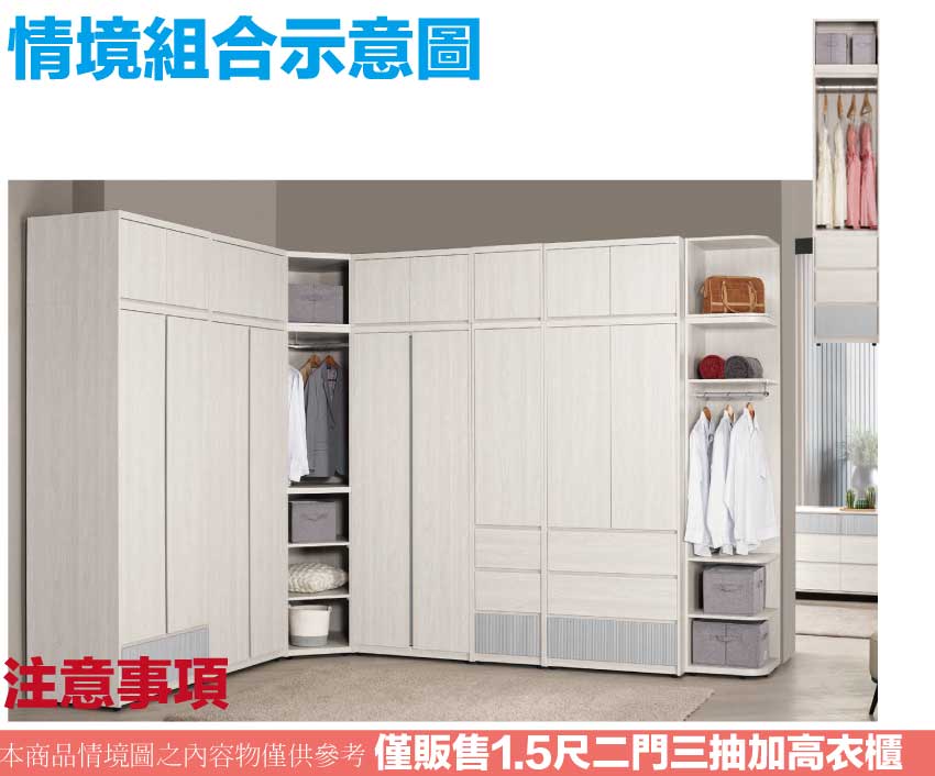 【文創集】克萊雙色1.5尺二門三抽加高衣櫃組合(客約商品)