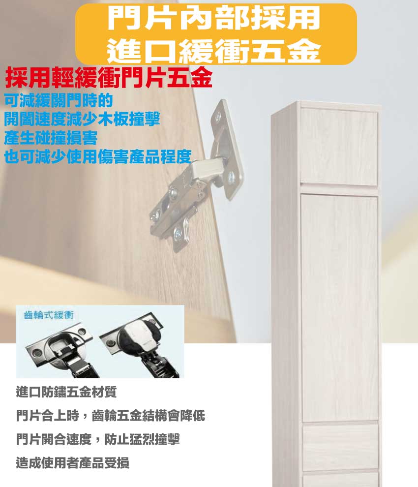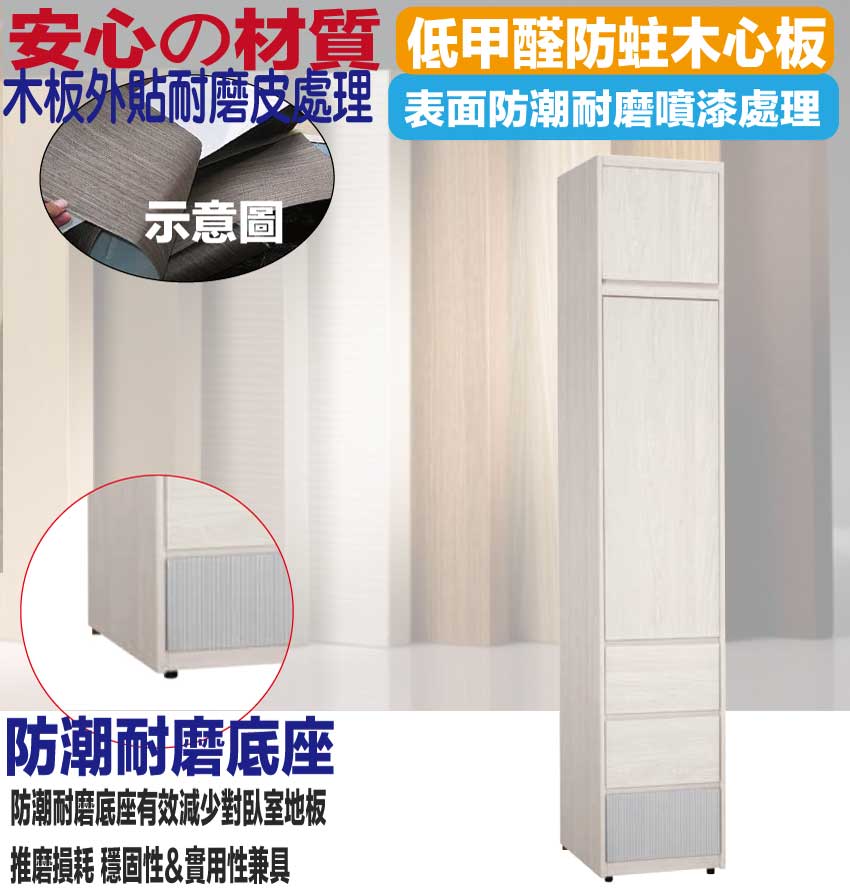 材質:防蛀木心板+防潮MDF板材(灰色耐磨面板)+防潮耐磨腳座+防夾手緩衝門片五金+五金滑軌結構