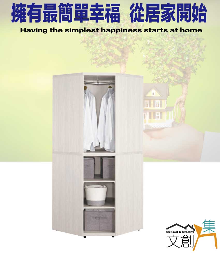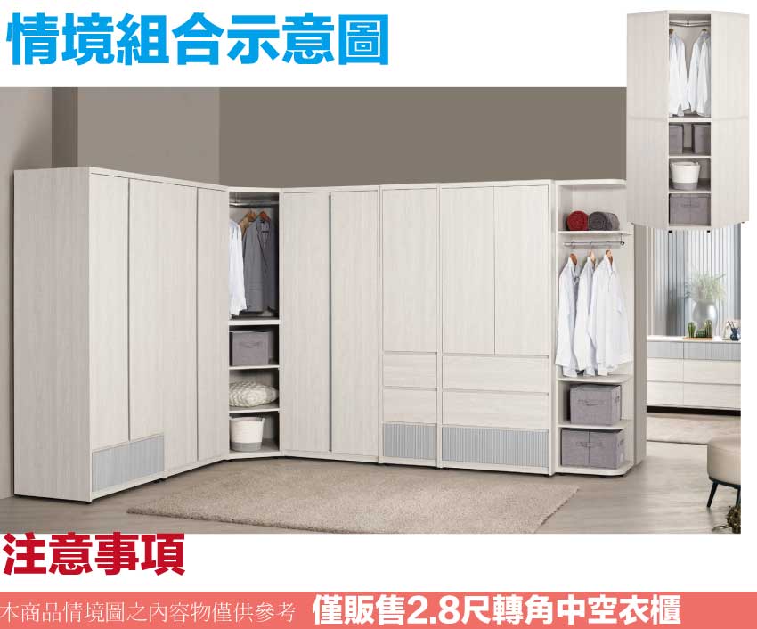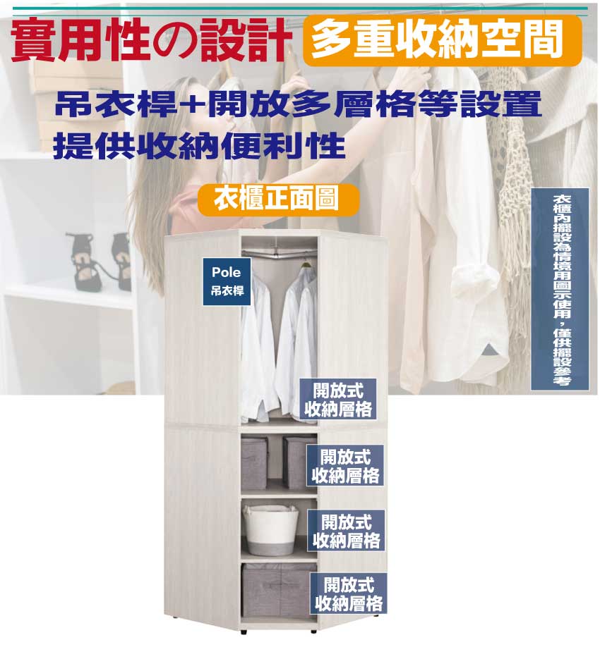 【文創集】克萊2.8尺單吊多格轉角式衣櫃(客約商品)