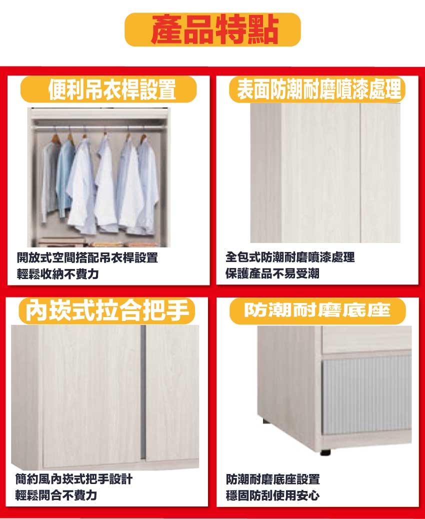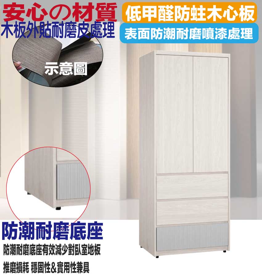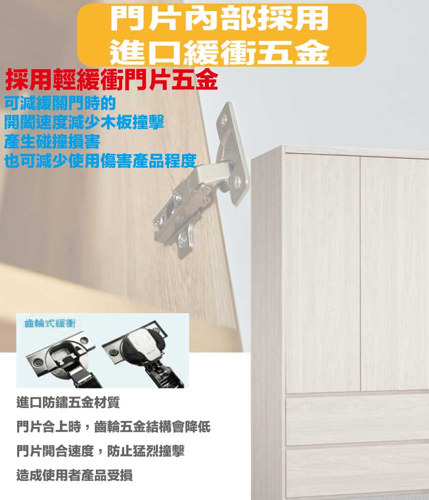 採用防蛀木心板+防潮耐磨底座+防夾手緩衝門片五金+五金滑軌結構等安心材質製造