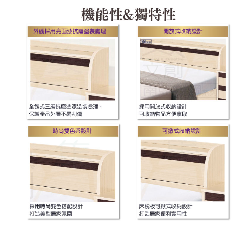 可掀式床枕板+隱藏&開放收納空間等收納設計