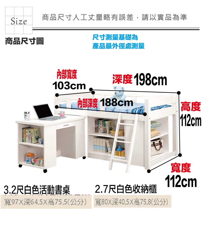 床台組合尺寸:(寬)112x(深)198x(高)112/公分