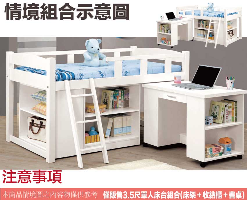 ◆產品名稱:【文創集】華爾3.5尺單人多功能床台組合(左&右可選+書桌+收納櫃+不含床墊)