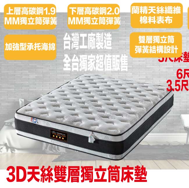 【文創集】3D天絲雙層獨立筒床墊-3.5尺單人