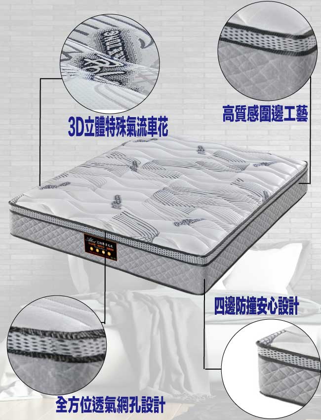 【文創集】3D涼感抑菌獨立筒床墊-3.5尺單人