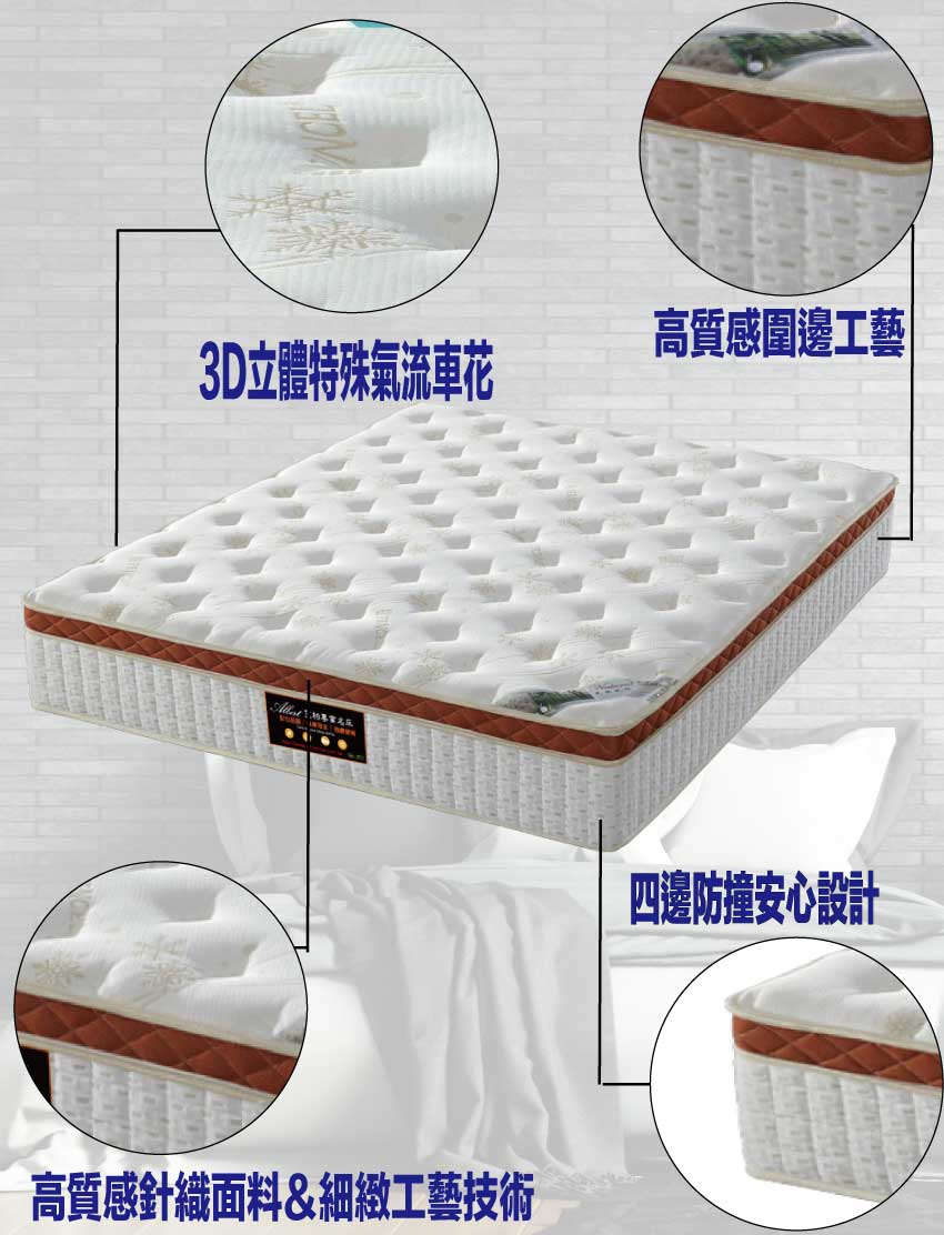 【文創集】3D防蟎抗菌護框獨立筒床墊-5尺雙人