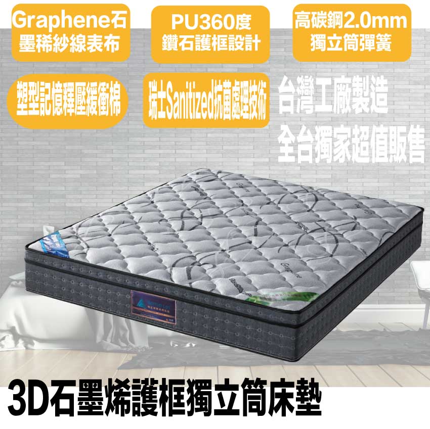 【文創集】石墨烯護框獨立筒床墊-5尺雙人