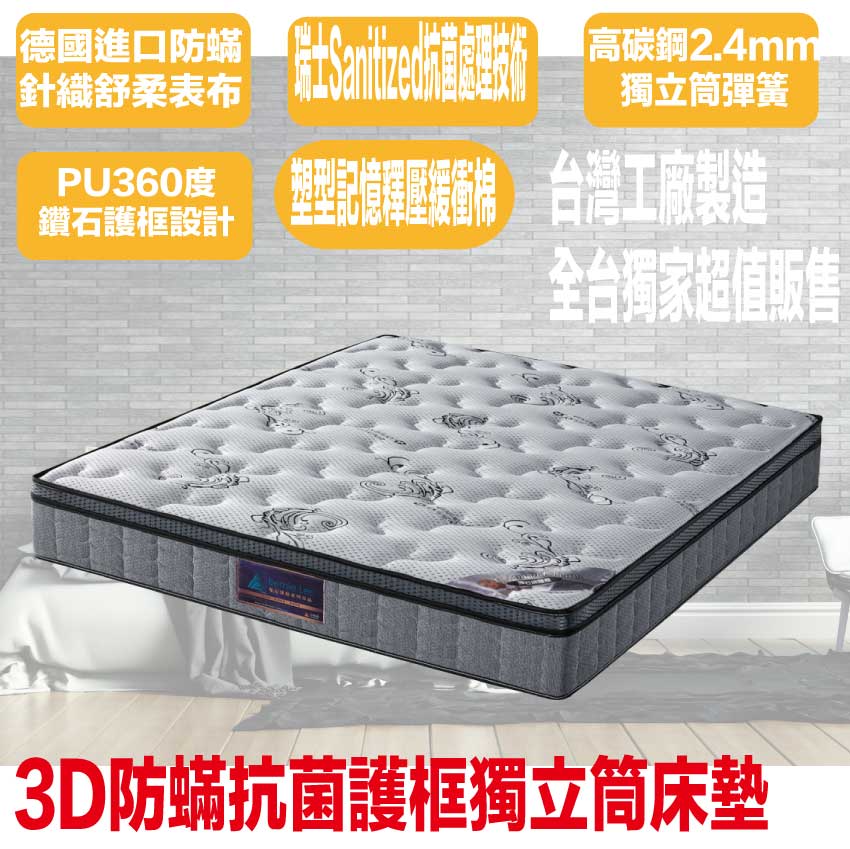 【文創集】3D防蟎抗菌護框獨立筒床墊-3.5尺單人