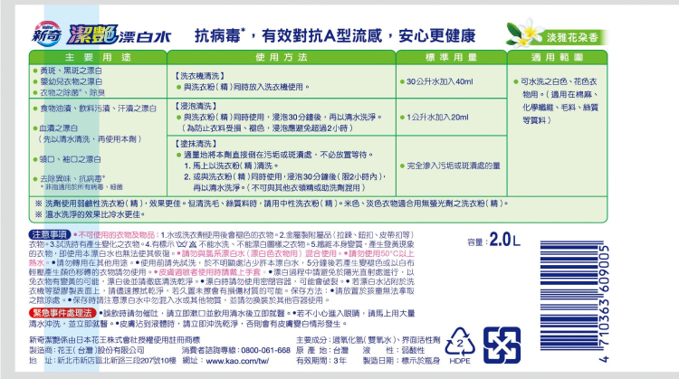 新奇潔艷漂白水瓶裝 淡雅花朵香