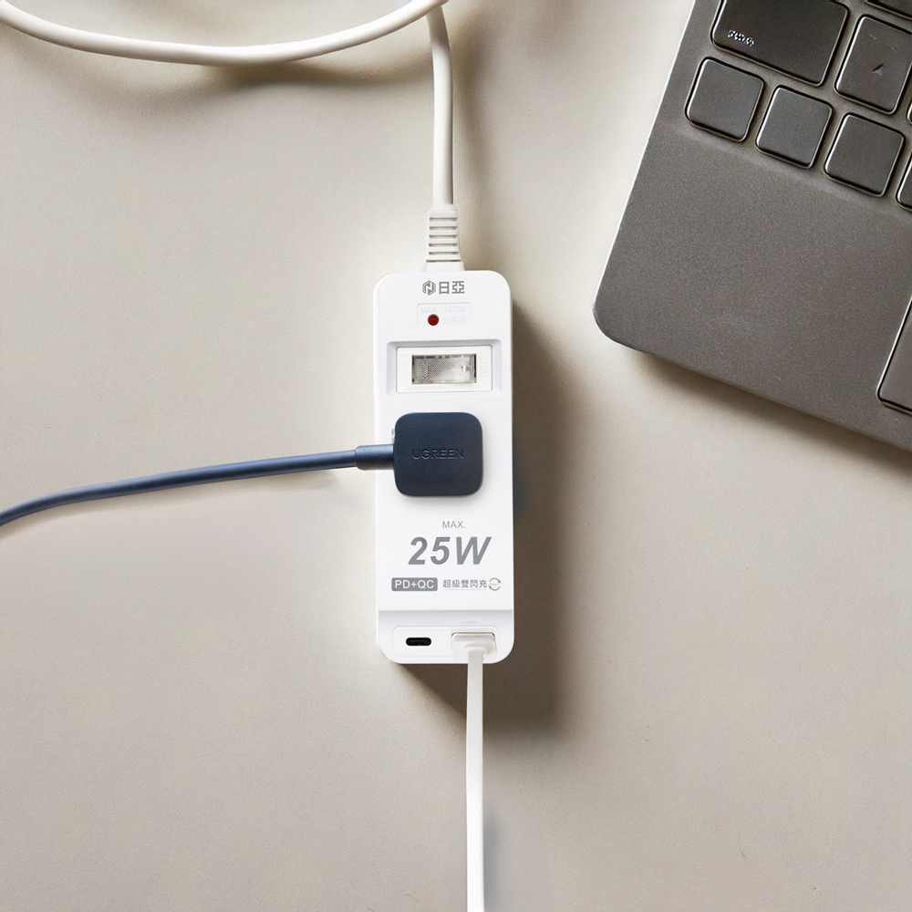 [寶旺旺] 日亞 防雷2孔1開3插PD 25W Type-C+QC3.0快充USB延長線6尺(1.8M)(新安規 iphone適用) C-08P25L