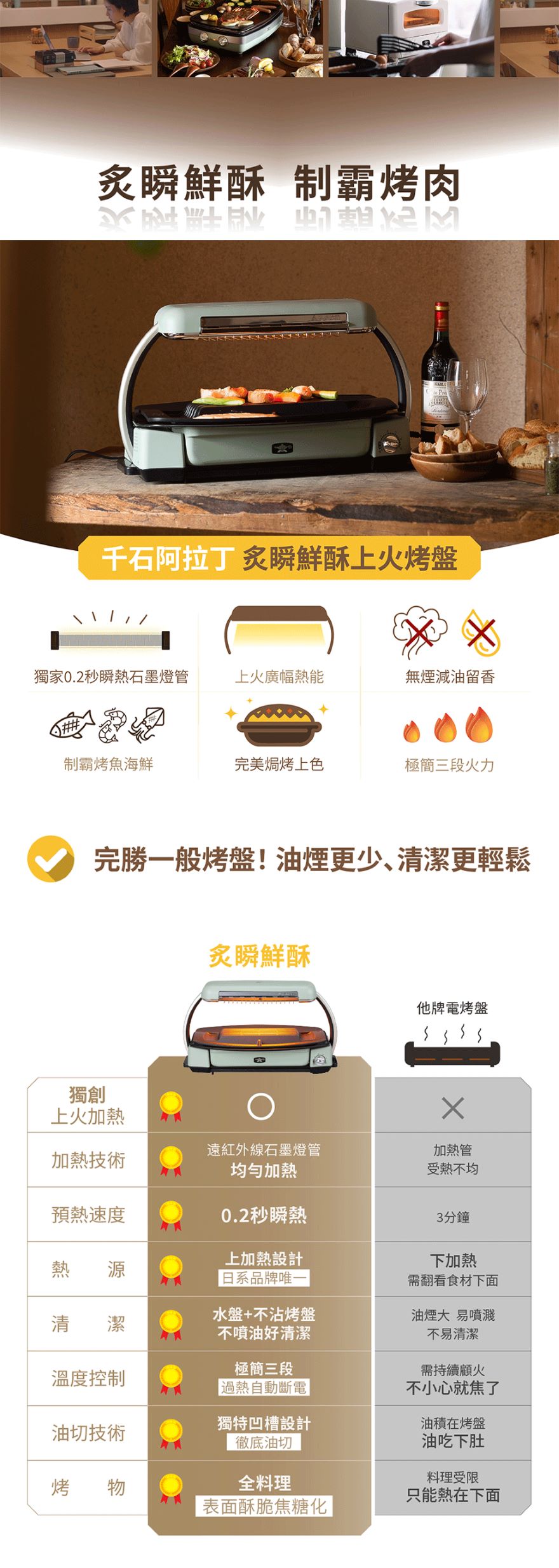 【可易家電】日本千石阿拉丁 瞬熱上火烤盤【炙瞬鮮酥】專利0.2秒遠紅外瞬熱燈管 CAG-C13T