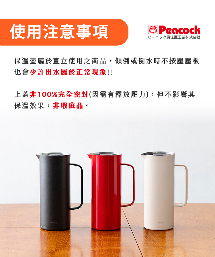 ※本壺請勿傾倒放置,若傾倒會些微滲漏為正常狀況,為避免壓力造成無法開啟,本身設計如此為正常現象非瑕疵。