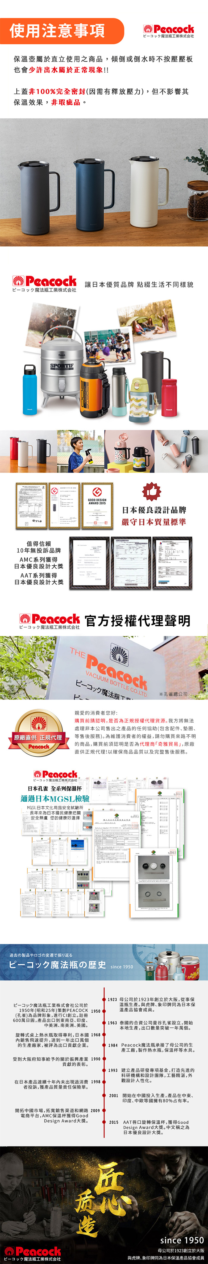 日本孔雀Peacock母公司於1923年創立於大阪,從事保溫瓶生產。與虎牌、象印牌同為日本保溫產品協會成員。
