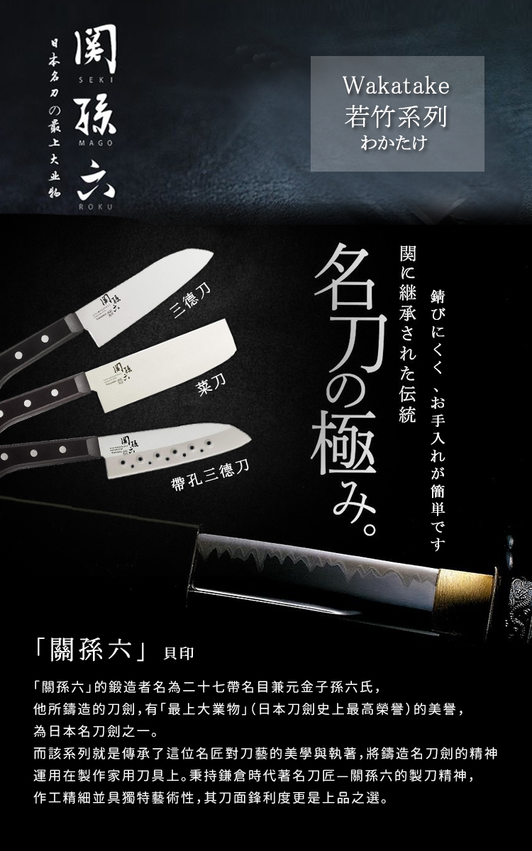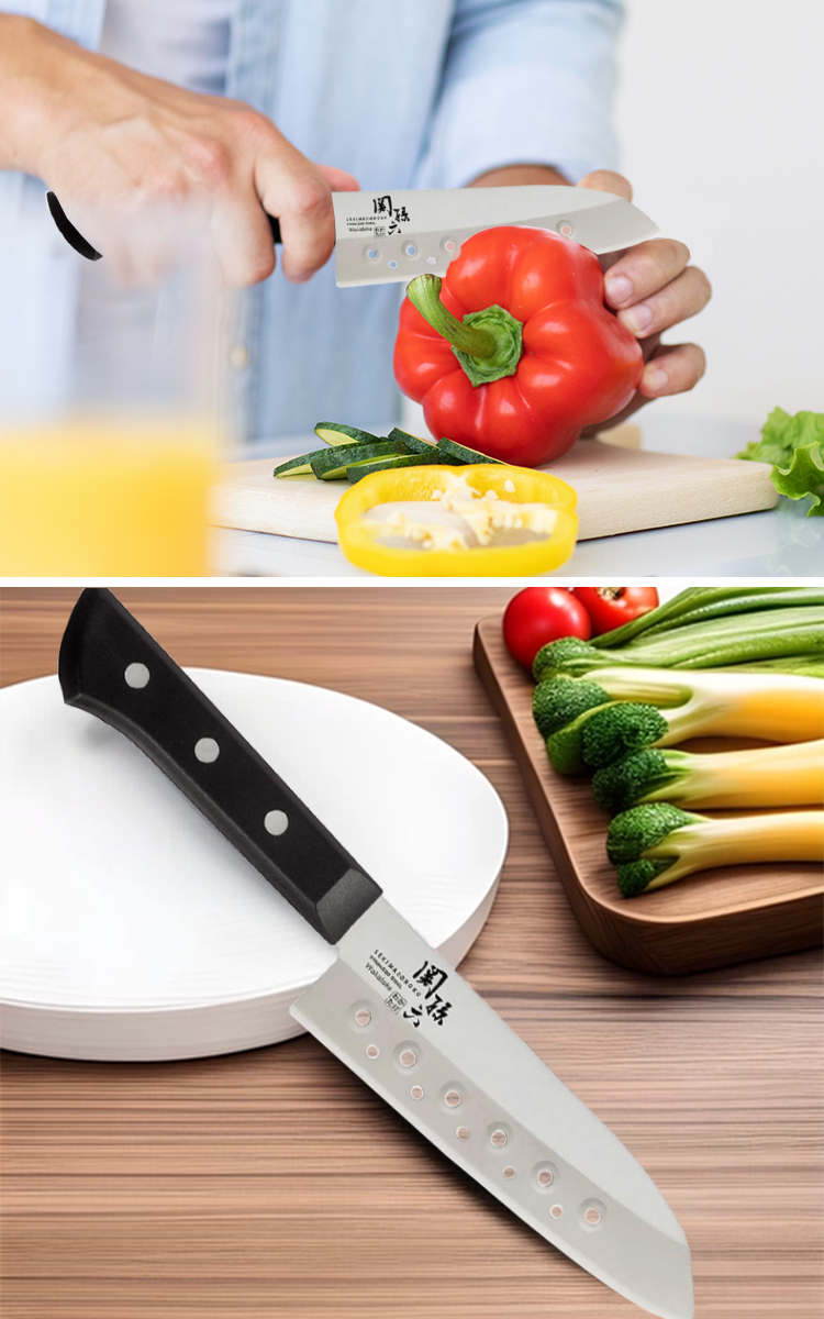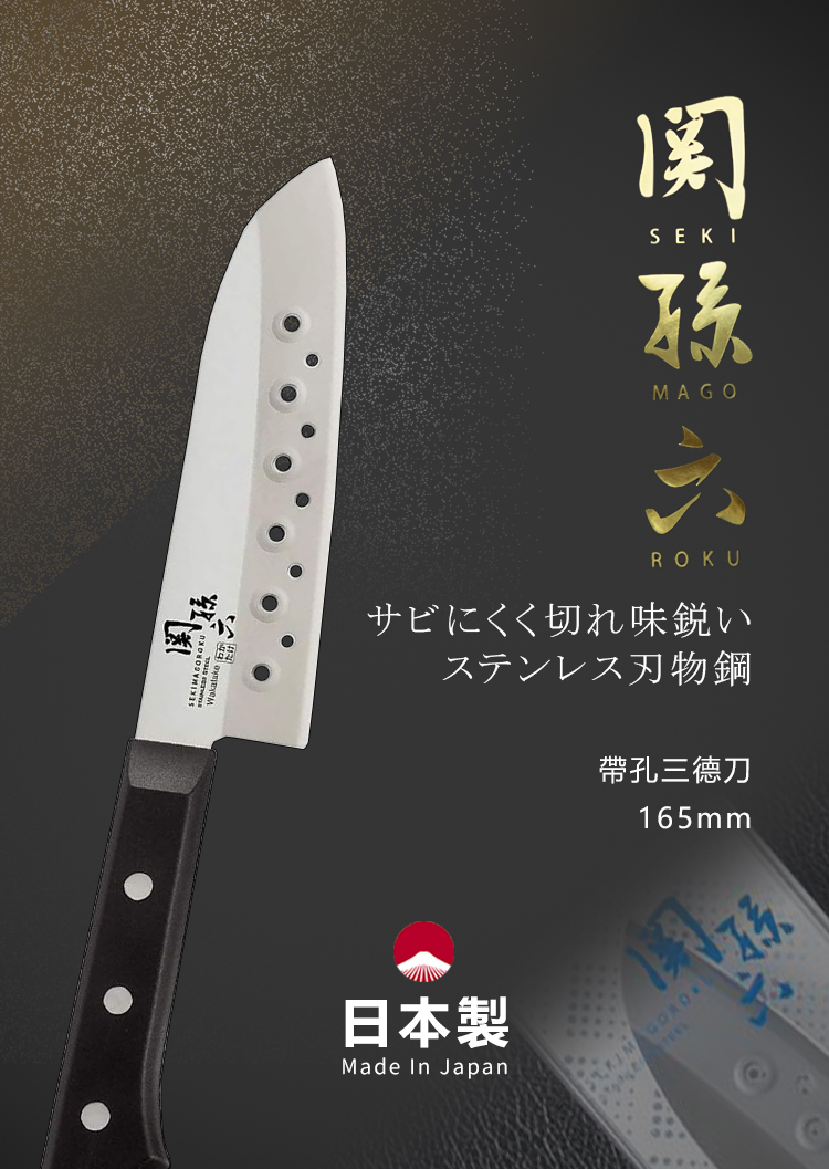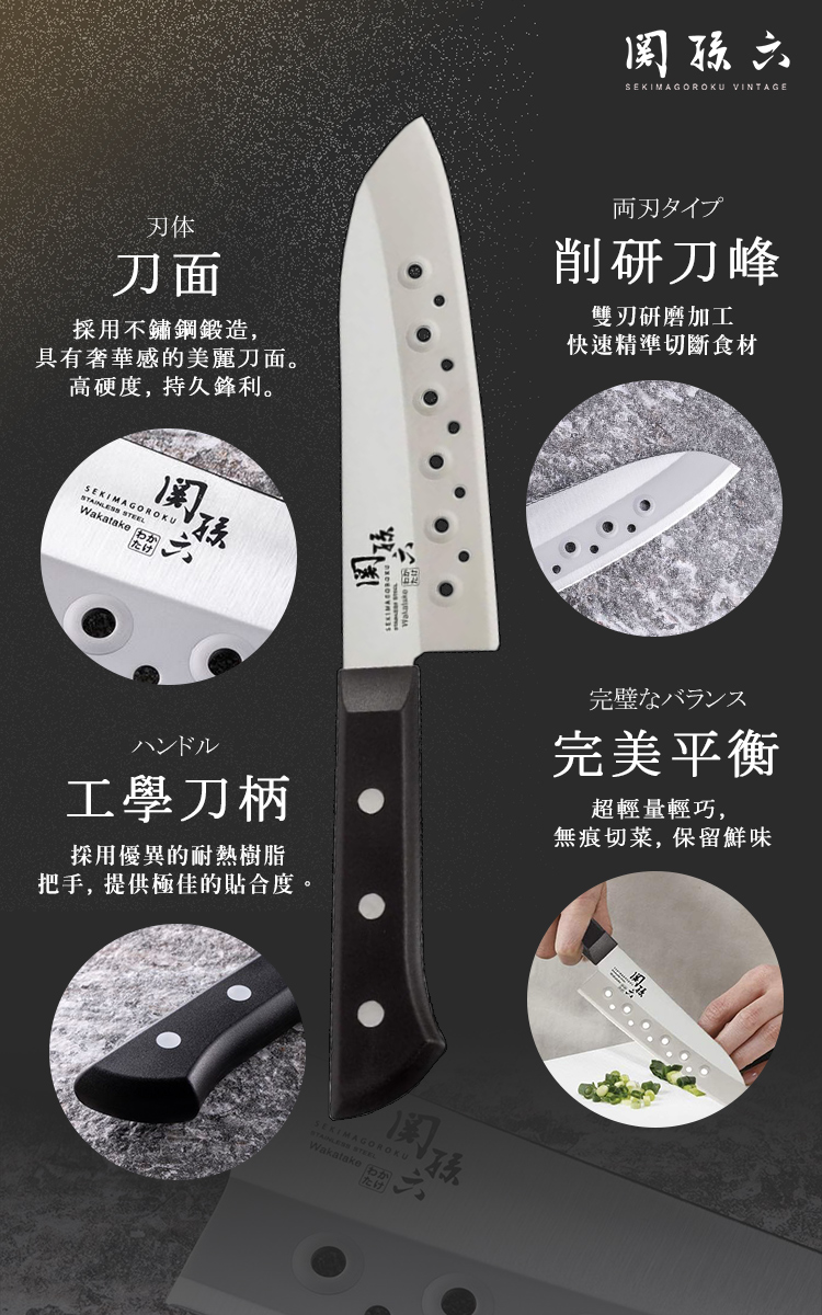 【日本貝印KAI】日本製 若竹名刀 關孫六 料理刀 廚房刀 不鏽鋼刀-16.5cm(帶孔三德刀)