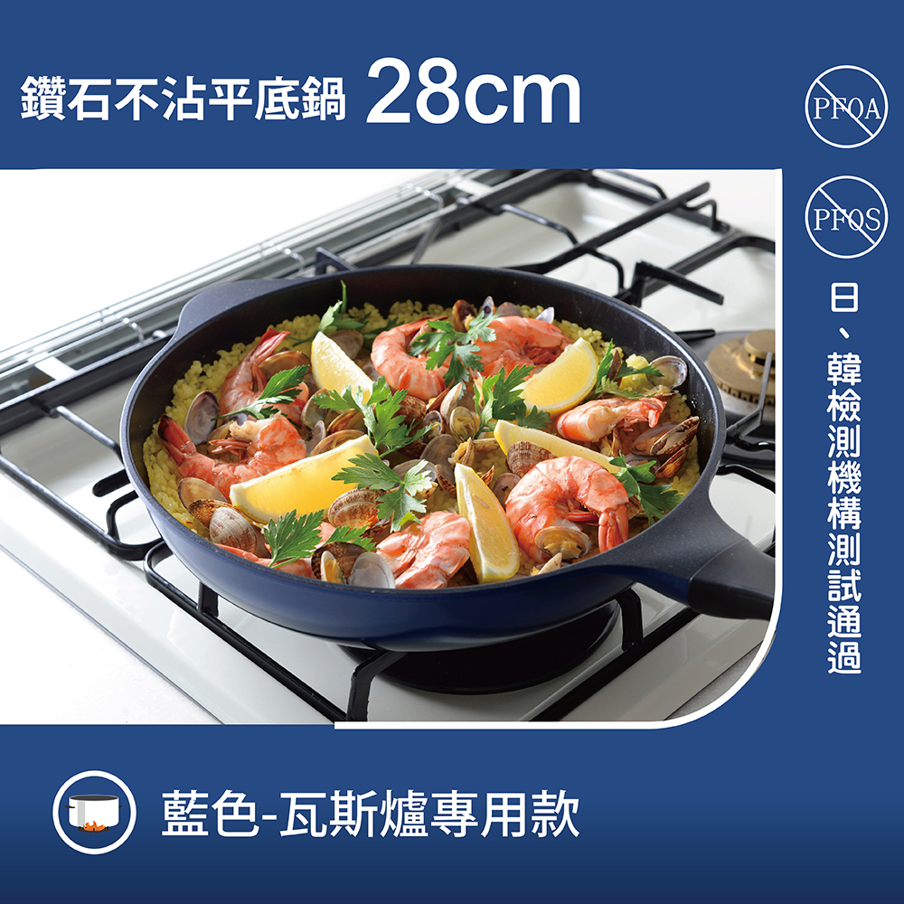 日本Arnest Bellfina鑽石不沾平底鍋28cm-海軍藍