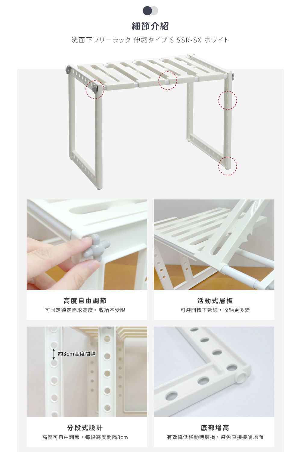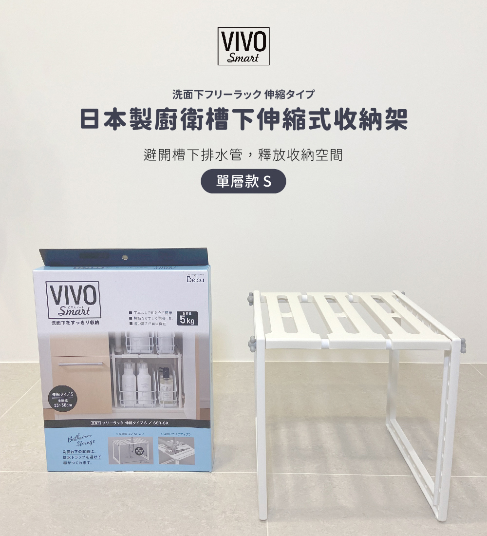 【Belca】日本製可伸縮單層下水槽收納架S(可避開水管/廚房收納架/衛浴收納架)