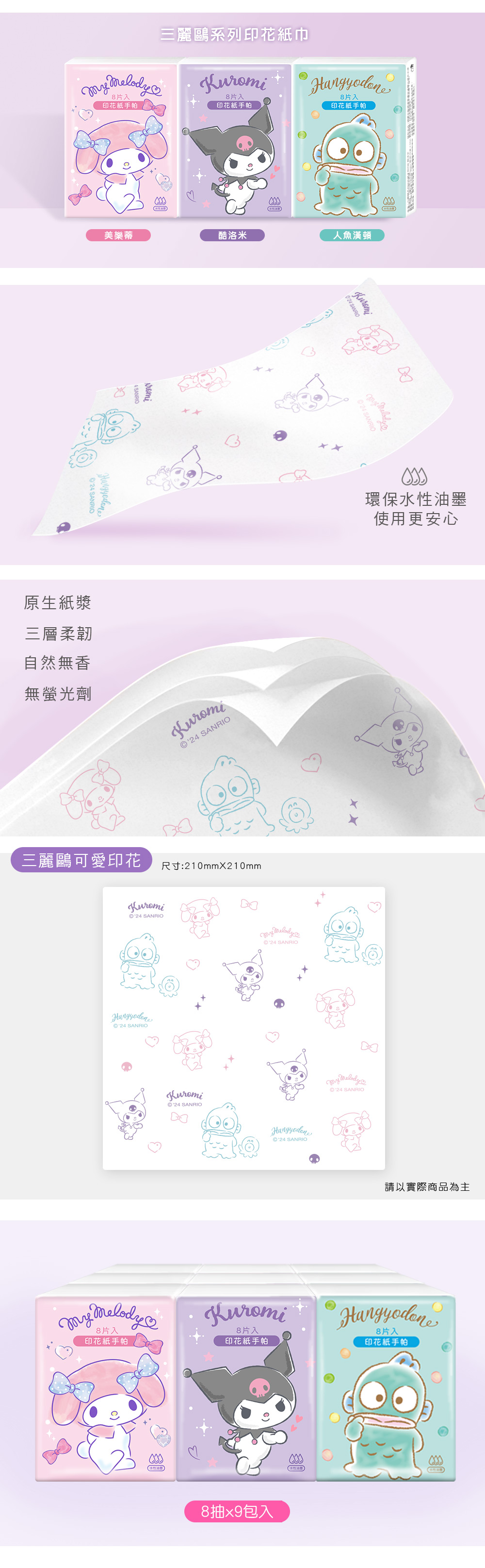 三麗鷗紙手帕(8抽9包)【旺達棉品】