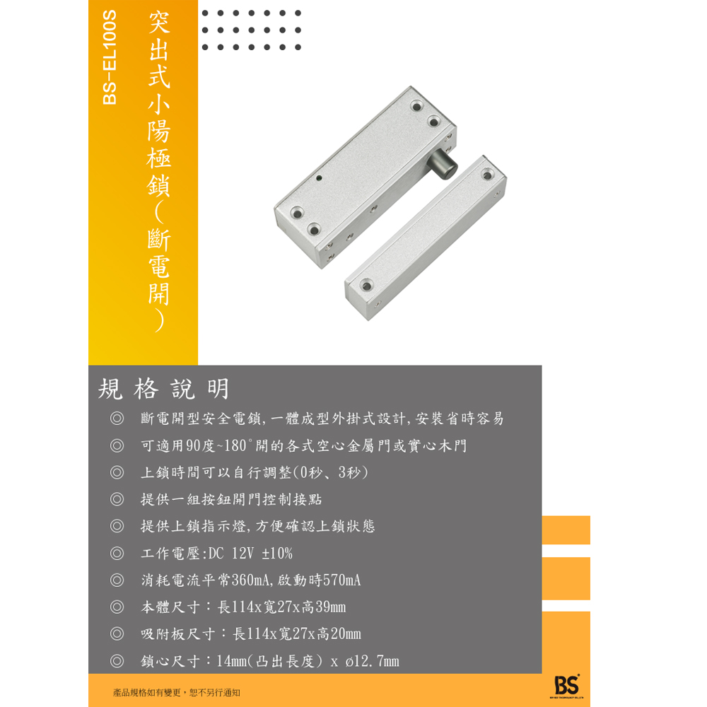 昌運監視器 BS-EL100S 突出小型陽極鎖 斷電開