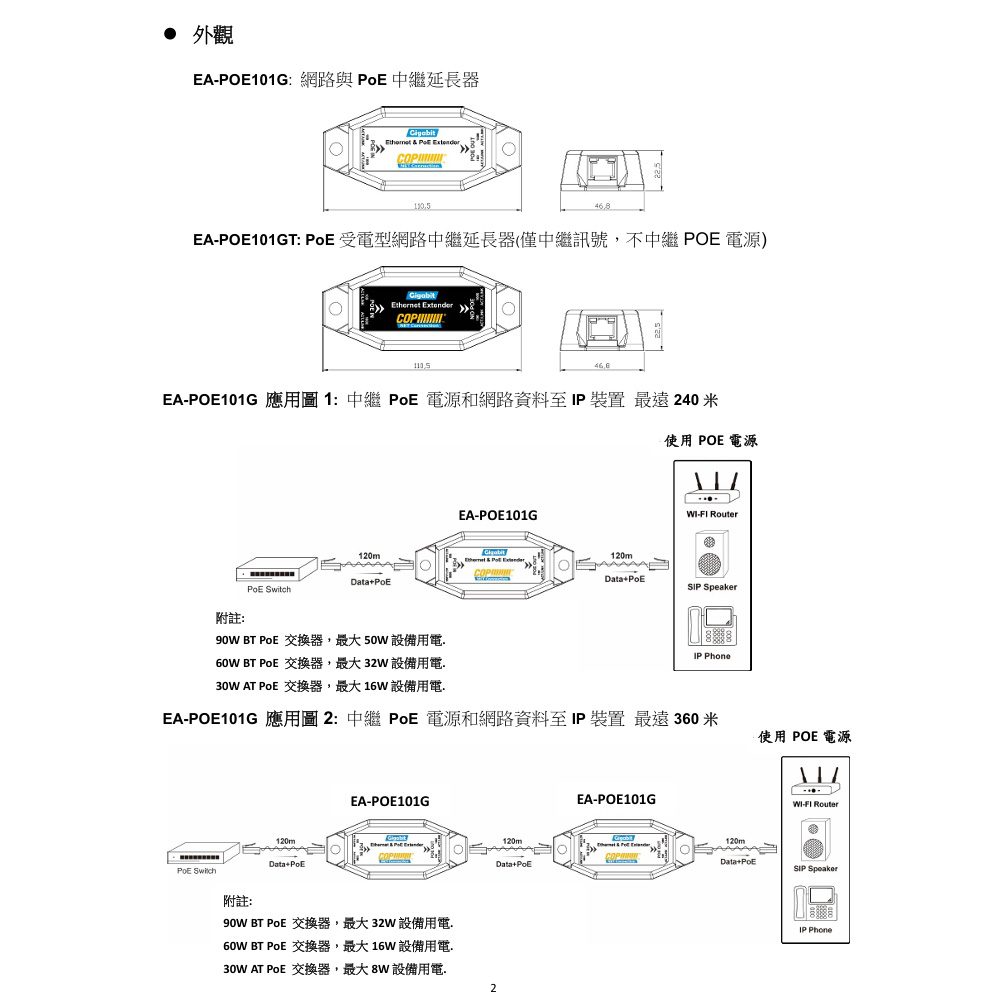 每多一台EA-POE101G 多延伸120米, 最遠可達600米