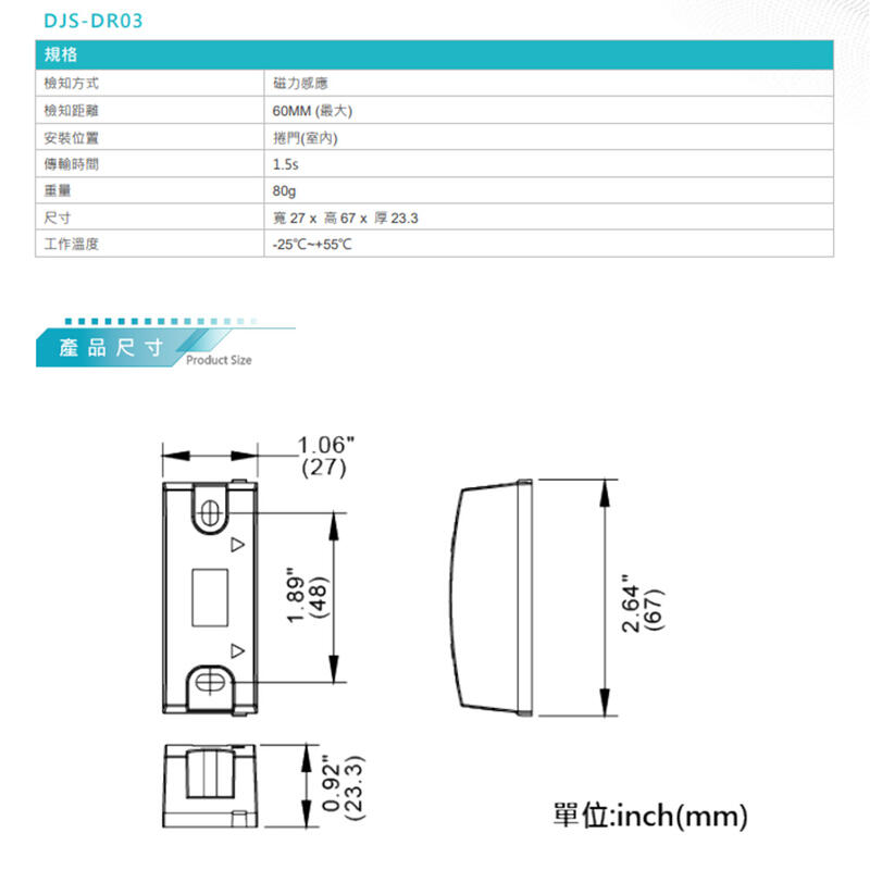 【贈送 智慧捲門開關專用安裝盒(DJS-BOX01)】-DJS-SD001Pro通過台灣NCC認證,已投保3200萬產品責任險,請安心選購。-原有開關直接更換,輕鬆升級(5G智慧捲門開關需要另外接AC110V或220V電源)。-出門免帶遙控器,手機開關超方便。-基本功能:5G/2.4G雙頻連線、面板防誤觸鎖定、Siri/Google語音控制、藍牙開關門、開關門推播通知、面板背光控制、支援多WiFi AP備援連線、定時/排程開關門、APP設定捲門模式(快速門或傳統捲門)、開關門時間控制(1秒~900秒)、多人手機控制(免付費)。-附加功能(須搭配DJS-DR03捲門感應器):門位顯示、設定防區、開關門紀錄。-防壓功能(須搭配DJS-IR02紅外線偵測器)。-無線協議:Wi-Fi 2.4GHz&5GHz 雙頻連線。-輸入電壓:AC100~240V(50/60Hz)。-手機APP控制捲門上、停、下。-APP:Smart Life。-尺寸:單聯,120mm×76mm×34m。注意:本產品需要另外接電源(AC110V或220V)。https://s-cf-tw.shopeesz.com/file/tw-11134208-7r991-lyd2jpkkr40u6bhttps://s-cf-tw.shopeesz.com/file/tw-11134208-7r98y-lyd2jpkksila6ehttps://s-cf-tw.shopeesz.com/file/tw-11134208-7r991-lyd2jpkktx5qa1https://s-cf-tw.shopeesz.com/file/tw-11134208-7r98y-lyd2jpkkvbq68ahttps://s-cf-tw.shopeesz.com/file/tw-11134208-7r98w-lyd2jpkkwqam8dhttps://s-cf-tw.shopeesz.com/file/tw-11134208-7r98x-lyd2lxxowy7227https://s-cf-tw.shopeesz.com/file/tw-11134208-7r98o-lyd2lxxoycri1fhttps://s-cf-tw.shopeesz.com/file/tw-11134208-7r98p-lyd2lxxozrbyba