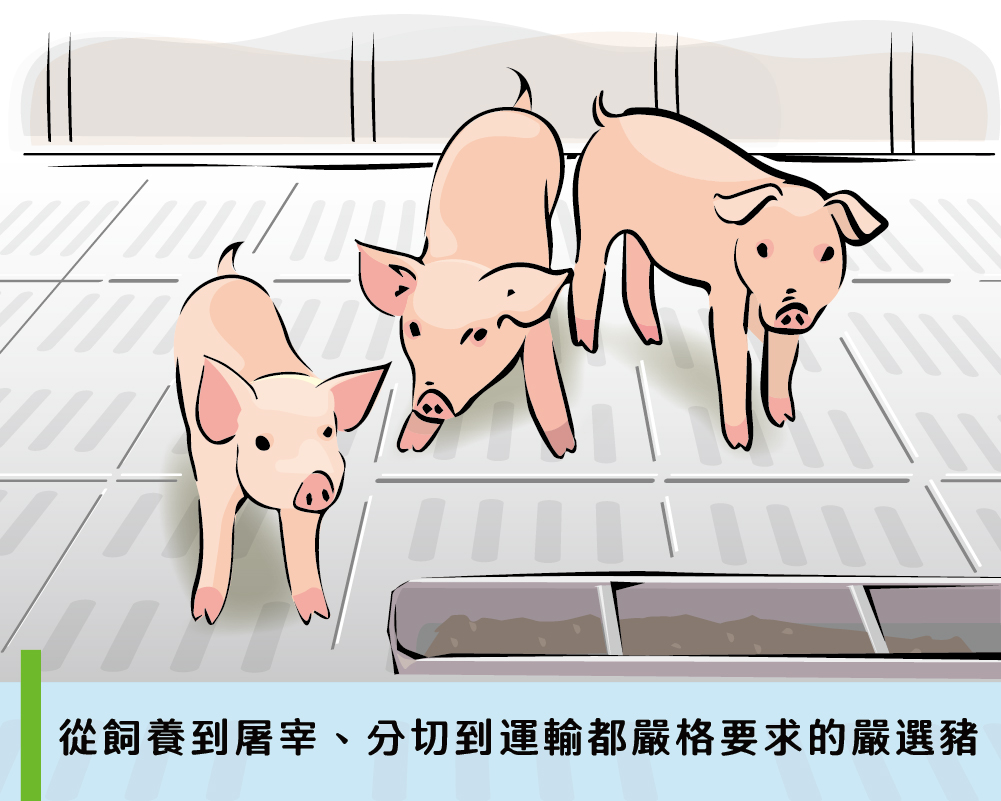 肋眼條肉,藏在豬背脊和腹脇的交界同時擁有Q彈順口的肉質和比例適中的脂肪帶點些許筋膜,口感豐富,軟嫩、Q彈一次擁有一邊咀嚼,一邊享受流出的肉汁和肉香,口感極佳。燒烤、快炒或是燉煮都很適合適中的油脂是肋眼條肉美味的關鍵,能夠保持肉塊長時間烹調也不乾澀。