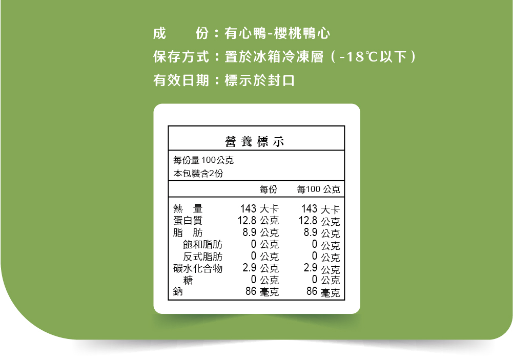 【有心肉舖子】有心鴨 櫻桃鴨心 200g